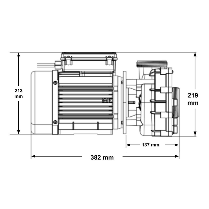 • Potencia Extrema: 2,2 kW (equivalente a 3,0 HP), ideal para alimentar circuitos con 20 o más jets de masaje.