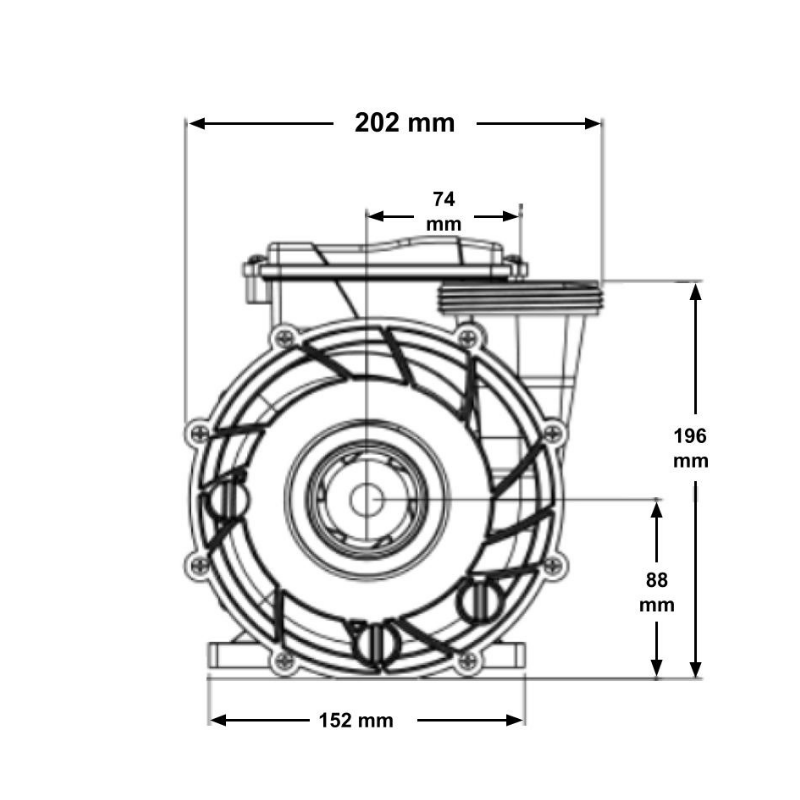 • Conexiones de 2 Pulgadas: Entrada y salida estándar para una integración sencilla en la mayoría de las tuberías de spa (aprox. 78 mm de rosca exterior).