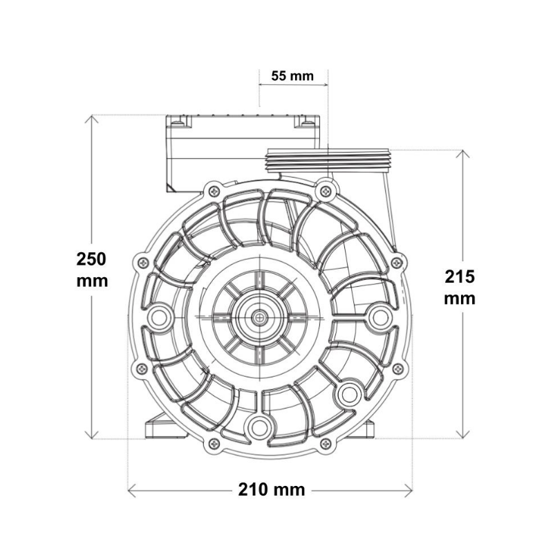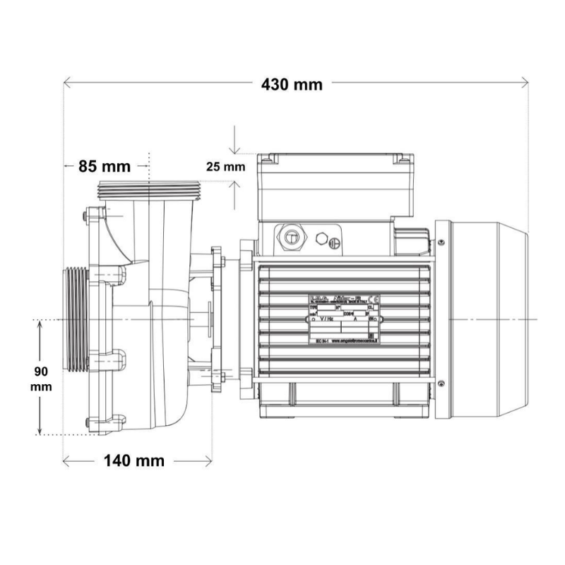 Motor de Marco 56 (56 Frame). Utiliza un motor de mayor diámetro que ofrece una mejor disipación de calor y un par de arranque superior, garantizando una vida útil prolongada incluso en spas de uso público o intensivo.