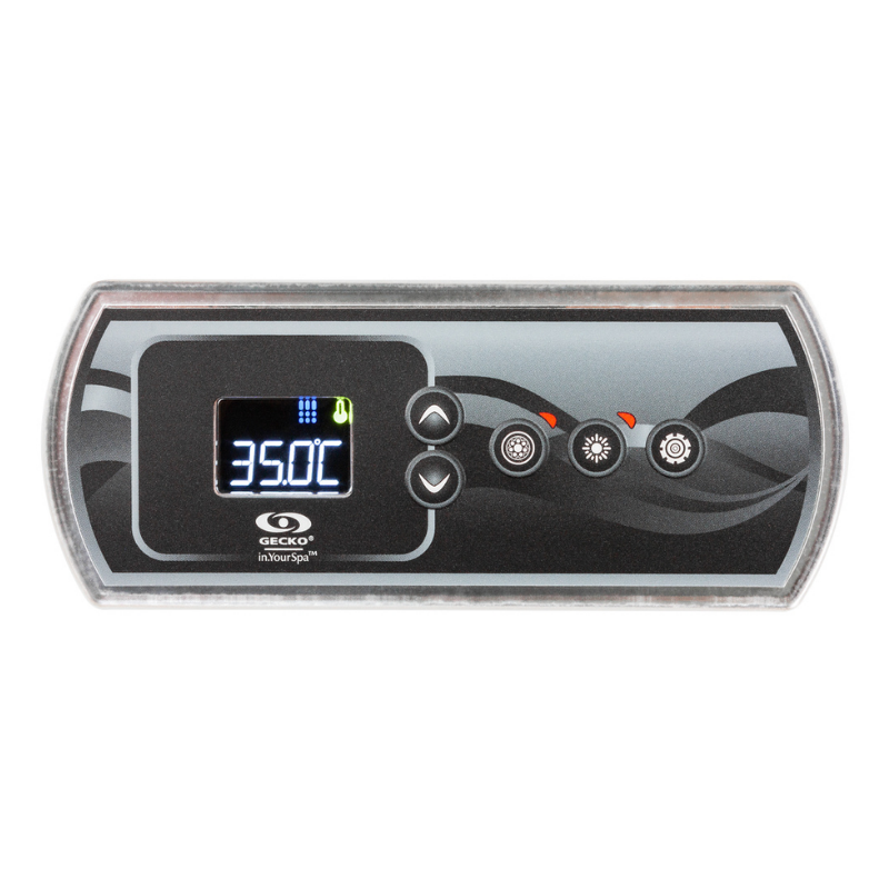 El panel Gecko in.k336 es el estándar de confianza para la gestión de sistemas de hidromasaje. Con su pantalla LCD clara y botones de alta resistencia, permite un manejo directo de todas las funciones esenciales. Su diseño está pensado para durar, soportando años de exposición al vapor y a los químicos sin perder sensibilidad.