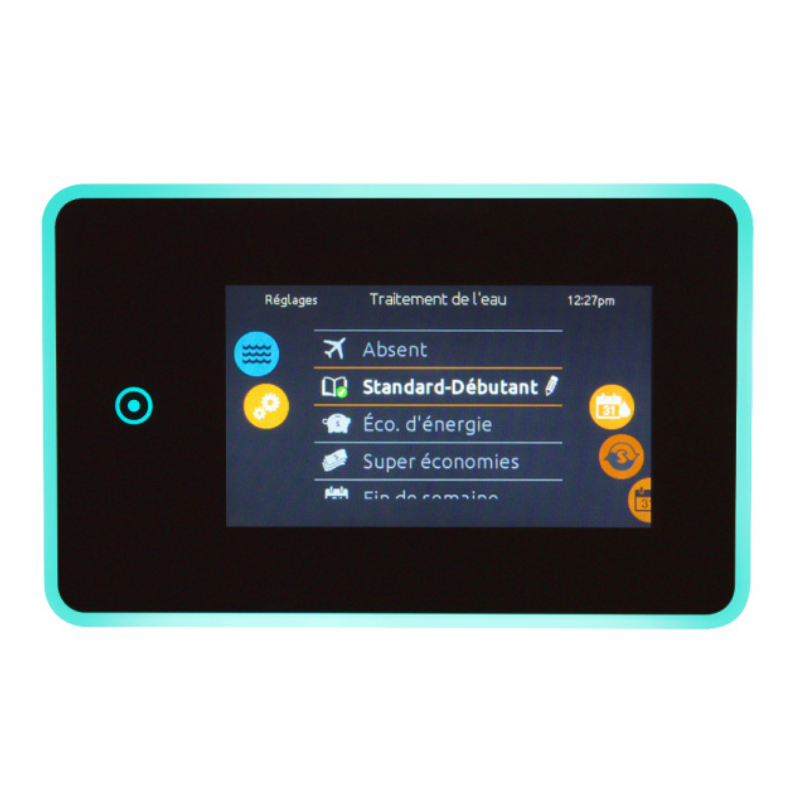 El teclado táctil interactivo Gecko in.k1001 redefine la experiencia de usuario en el spa, sustituyendo los botones tradicionales por una pantalla capacitiva a color de alta resolución. Con una interfaz intuitiva similar a la de un smartphone, este panel permite un control total y fluido sobre todas las funciones del hidromasaje: desde la gestión precisa de la temperatura y los ciclos de filtración, hasta el control de sistemas periféricos como el audio in.stream 2, la desinfección in.clear y la iluminación cromática. Su diseño robusto y completamente estanco está optimizado para responder perfectamente incluso con los dedos húmedos, convirtiéndolo en el centro de mando más avanzado para spas de gama premium que buscan el máximo confort y modernidad.